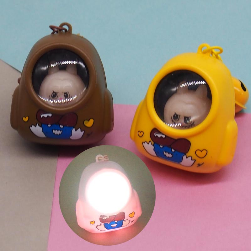 ---Брелок 281125-3 (20) Лабубу в рюкзаке со светом металл 5х3,5х4,5см с бубенцом
