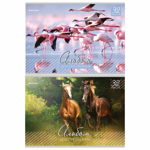 ----Альбом для рисования, А4, 32 листа, скоба, обложка картон, BRAUBERG, 200х283 мм, "Живая природа" (2 вида), 103683