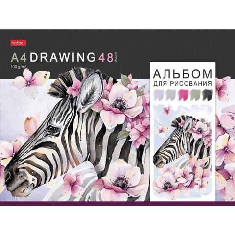 Альбом для рисования HATBER - современный атрибут каждого ребенка-школьника и взрослого творческой профессии или же тех, кто увлекается живописью в свободное время.<br><br>Альбом для рисования А4 формата, размер - 205х290 мм. Внутренний блок состоит из 48 листов офсетной бумаги плотностью 100 г/м2. Обложка изготовлена из высококачественного мелованного картона. Скоба надежно скрепляет листы между собой. Подходит для рисования карандашами, фломастерами, красками.