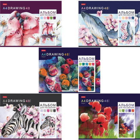 Поставляется в 5 вариантах дизайна без возможности выбора.<br><br>Количество листов: 48<br>Формат: А4<br>Обложка: мелованный картон<br>Тип спецэффектов на обложке: нет<br>Тип товара: альбом для рисования<br>Дизайн: Акварельная палитра<br>Тип скрепления: скоба<br>Плотность бумаги: 100 г/м2<br>Пол ребенка: для всех<br>Количество дизайнов в минимальной упаковке: 5 шт.<br>Количество дизайнов в транспортной упаковке: 5 шт. -