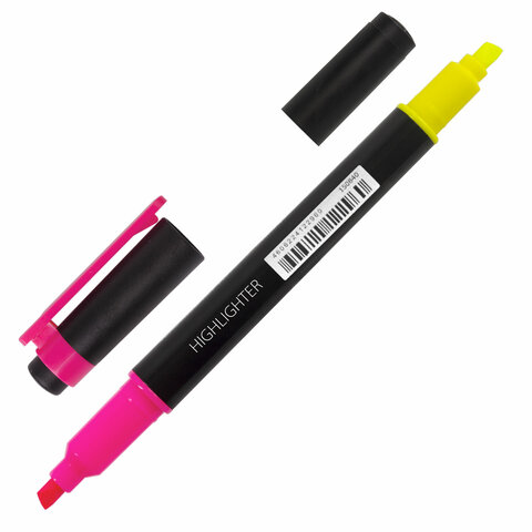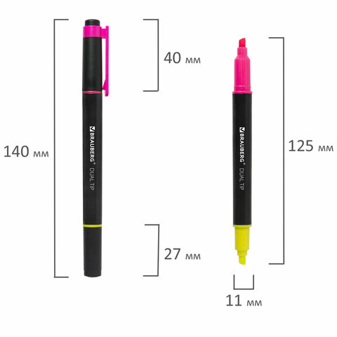 ----Текстовыделитель двусторонний BRAUBERG, ЖЕЛТЫЙ/РОЗОВЫЙ, линия 1-4 мм, 150840