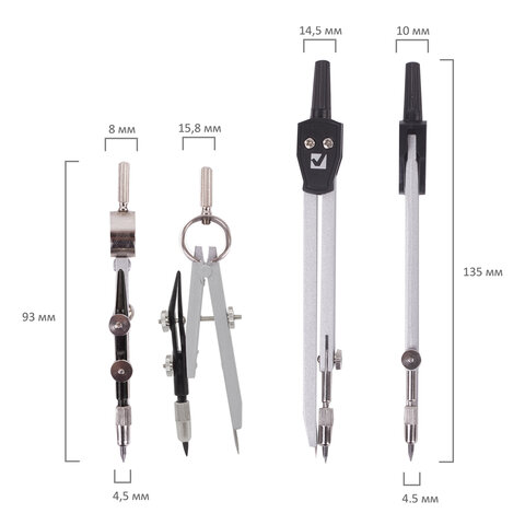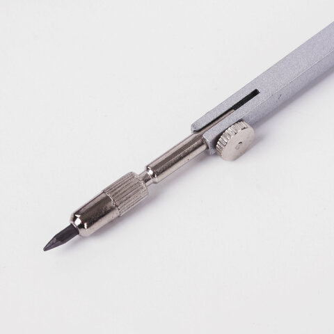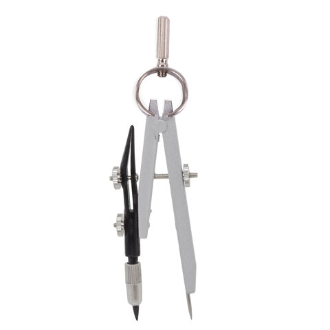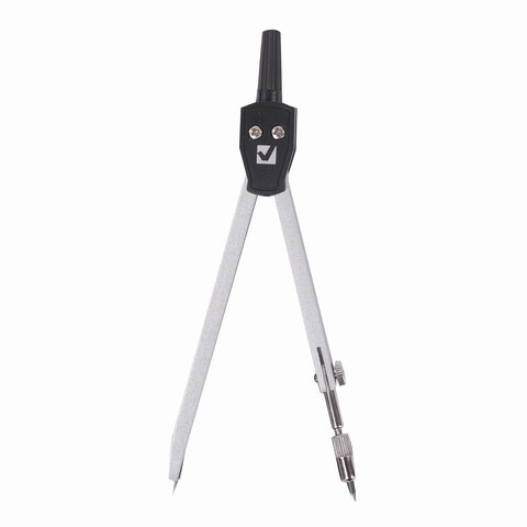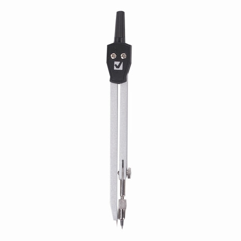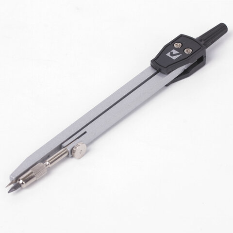 Циркуль длиной 135 мм. Изготовлен из металла, дополнительный цвет элементов – черный.
