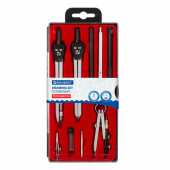 Поставляется в пластиковом пенале с прозрачной крышкой и с европодвесом.<br><br>Тип товара: готовальня<br>Серия: Architect<br>Количество предметов: 9 шт.<br>Длина циркуля: 135 мм<br>Тип штанги: несгибаемые<br>Комплектация: игольная вставка, кронциркуль, пенал с запасным грифелем, рейсфедер, рейсфедерная вставка и держатель, удлинитель, циркуль, циркуль-измеритель<br>Цвет корпуса: черный/серебристый<br>Материал: металл<br>Упаковка: пластиковый пенал с европодвесом -