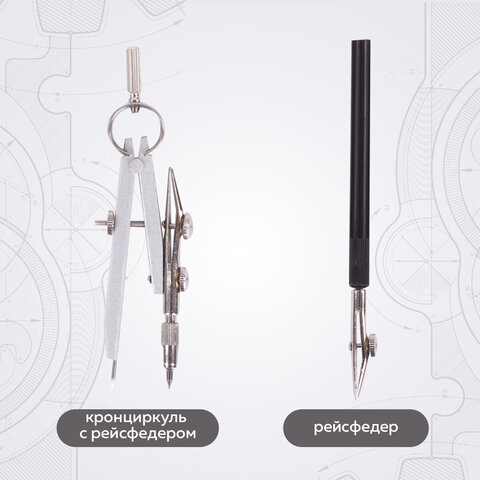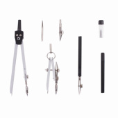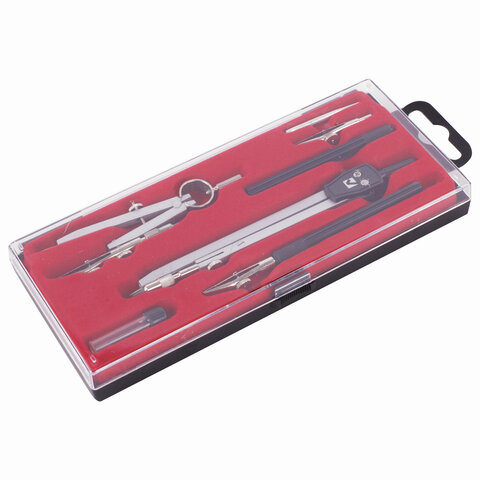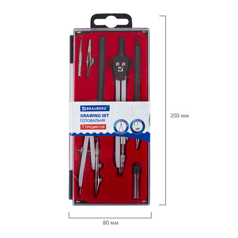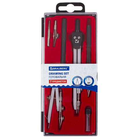 ----Готовальня BRAUBERG "Architect", 7 предметов: циркуль + кронциркуль с рейсфедором, рейсфедер + держатель, 2 вставки, грифель, 210346
