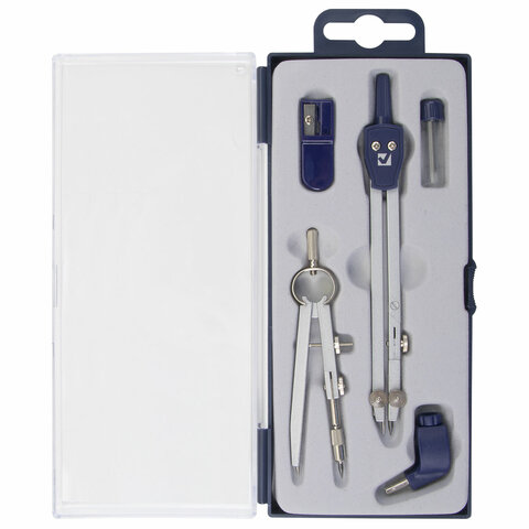 Поставляется в пластиковом пенале с прозрачной крышкой и с европодвесом.<br><br>Тип товара: готовальня<br>Серия: Student Oxford<br>Количество предметов: 5 шт.<br>Длина циркуля: 140 мм<br>Тип штанги: одна сгибаемая<br>Комплектация: держатель, кронциркуль, пенал с запасным грифелем, точилка, циркуль<br>Цвет корпуса: синий/серебристый<br>Материал: металл<br>Упаковка: пластиковый пенал с европодвесом -