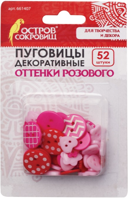 ----Пуговицы декоративные ОТТЕНКИ РОЗОВОГО, пластик, 52шт., ассорти, ОСТРОВ СОКРОВИЩ, 661407