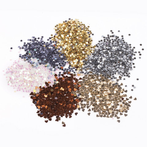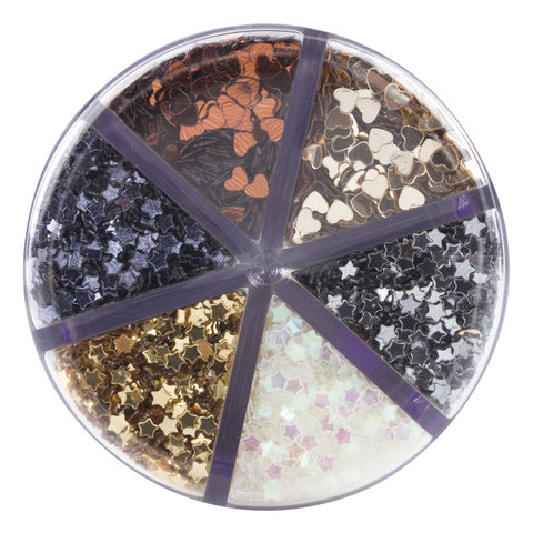 Блестки для декора, поделок, DIY, творчества, оформления, ФИГУРНЫЕ МЕТАЛЛИК, ОСТРОВ СОКРОВИЩ, диспенсер с дозатором, 6 цветов по 9 г, 191373