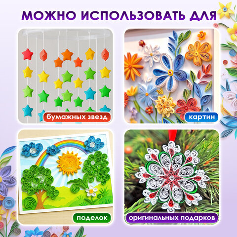Квиллинг — это искусство бумагокручения, то есть изготовления плоских или объемных композиций из скрученных в спирали длинных и узких полосок бумаги. Готовым спиралям придается различная форма. Так получаются модули, из которых создаются работы — картины, открытки, альбомы, рамки, фигурки и т.д.<br><br>Назначение: квиллинг<br>Тип товара: полоски для квиллинга<br>Тип материала: цветная бумага<br>Количество цветов: 10<br>Особенности: двухсторонняя<br>Количество полос/листов: 200<br>Длина: 300 мм<br>Ширина: 3 мм<br>Плотность: 80 г/м2<br>Цвет: ассорти<br>Упаковка: пакет с европодвесом -