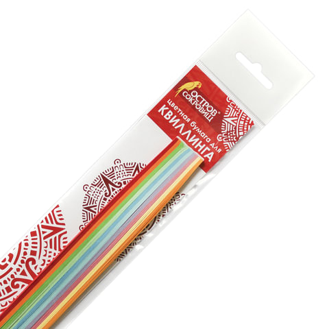 Цветная бумага для квиллинга ОСТРОВ СОКРОВИЩ применяется для создания аппликаций, открыток, альбомов и прочих поделок путем скручивания полосок бумаги в спиральки, которым придаются различные формы.<br><br>Набор включает 200 двусторонних полос 10 радужных цветов. Плотность бумаги - 80 г/м2. Размер полос - 3х300 мм. Поставляются в пакете с европодвесом.