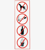 ----Знак запрещающий пить. есть. курить. проход с животными 30х10см самоклейка