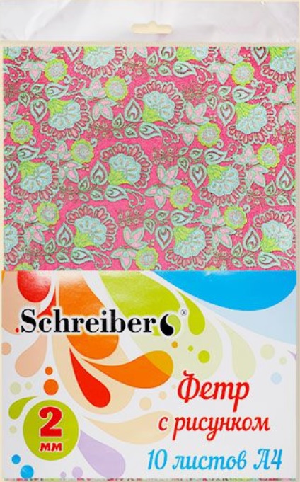 ----Набор цветного фетра ЯРКИЙ ЦВЕТОЧНЫЙ ОРНАМЕНТ 10 л толщина 2 мм А4 S 5011 /60/