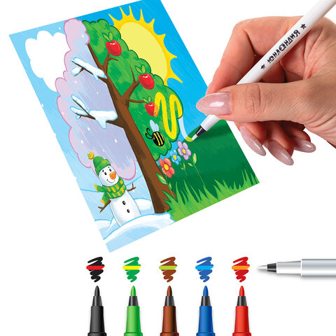 • Фломастеры ПИФАГОР "ЭНИКИ-БЕНИКИ", 6 цветов, вентилируемый колпачок, 151400