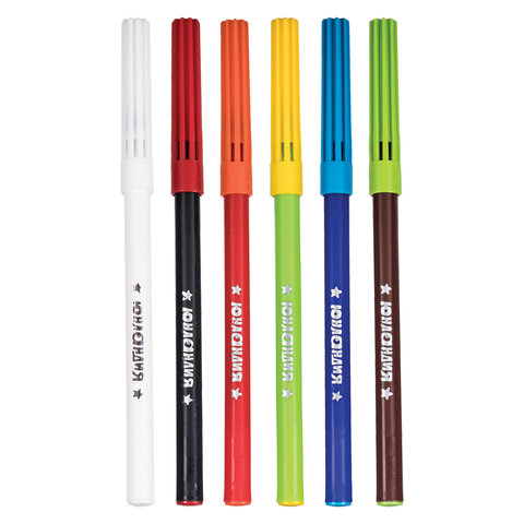 • Фломастеры ПИФАГОР, 6 цветов, вентилируемый колпачок, 151089