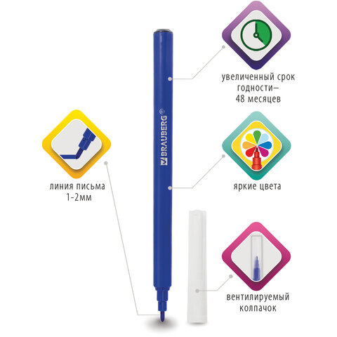 • картинка Фломастеры BRAUBERG "PREMIUM", 6 цветов, КЛАССИЧЕСКИЕ, вентилируемый колпачок, ПВХ-упаковка с европодвесом, 151933 от магазина МОЛТИ