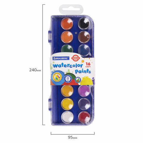 ----Краски акварельные BRAUBERG "PREMIUM" 16 цветов, круглые кюветы 23 мм, пенал, 191744