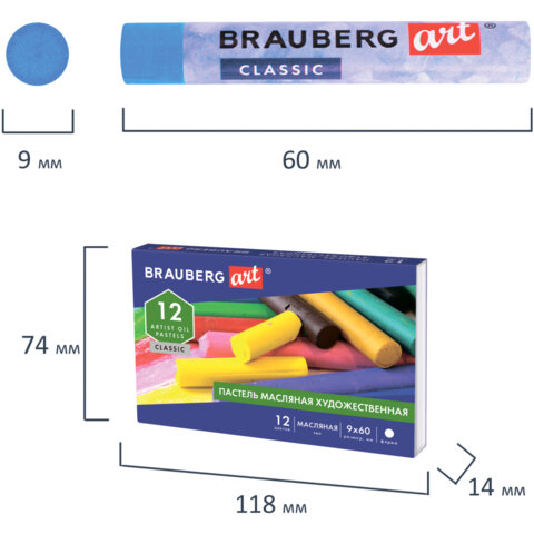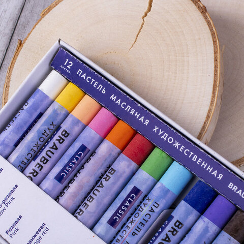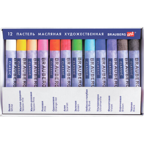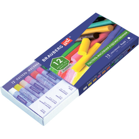 ----Пастель масляная художественная BRAUBERG ART CLASSIC, 12 цветов, круглое сечение, 181447