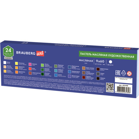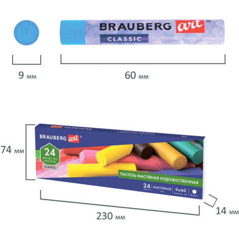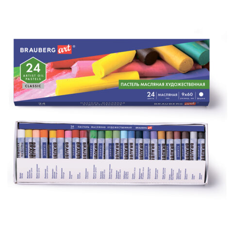 ----Пастель масляная художественная BRAUBERG ART CLASSIC, 24 цвета, круглое сечение, 181448