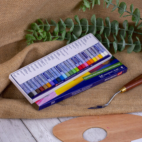 Масляная художественная пастель BRAUBERG ART "Classic" отличается мягкой консистенцией и интенсивной маслянистой цветовой палитрой. Пастель не пачкается, тем самым законченные рисунки труднее смазать и они не требуют дополнительной фиксации.<br><br>Масляная пастель легко ложится на различные фактуры цветной бумаги, бумагу для рисования, холст, картон, дерево, керамику. 24 цвета позволяют передать цветовую палитру. Высокое качество пигментов и связующего обеспечивает низкий расход материала, хорошую укрывистость и яркость цвета. Пастель имеет вид брусков с круглым сечением, обёрнутых в бумажную обёртку. Она позволяет сохранять руки и одежду чистыми. Не токсична и безопасна при использовании. Благодаря компактной упаковке удобно брать с собой.