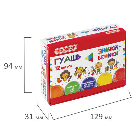 Гуашь ПИФАГОР ЭНИКИ-БЕНИКИ, 12 цветов по 10 мл, без кисти, картонная упаковка, 191330