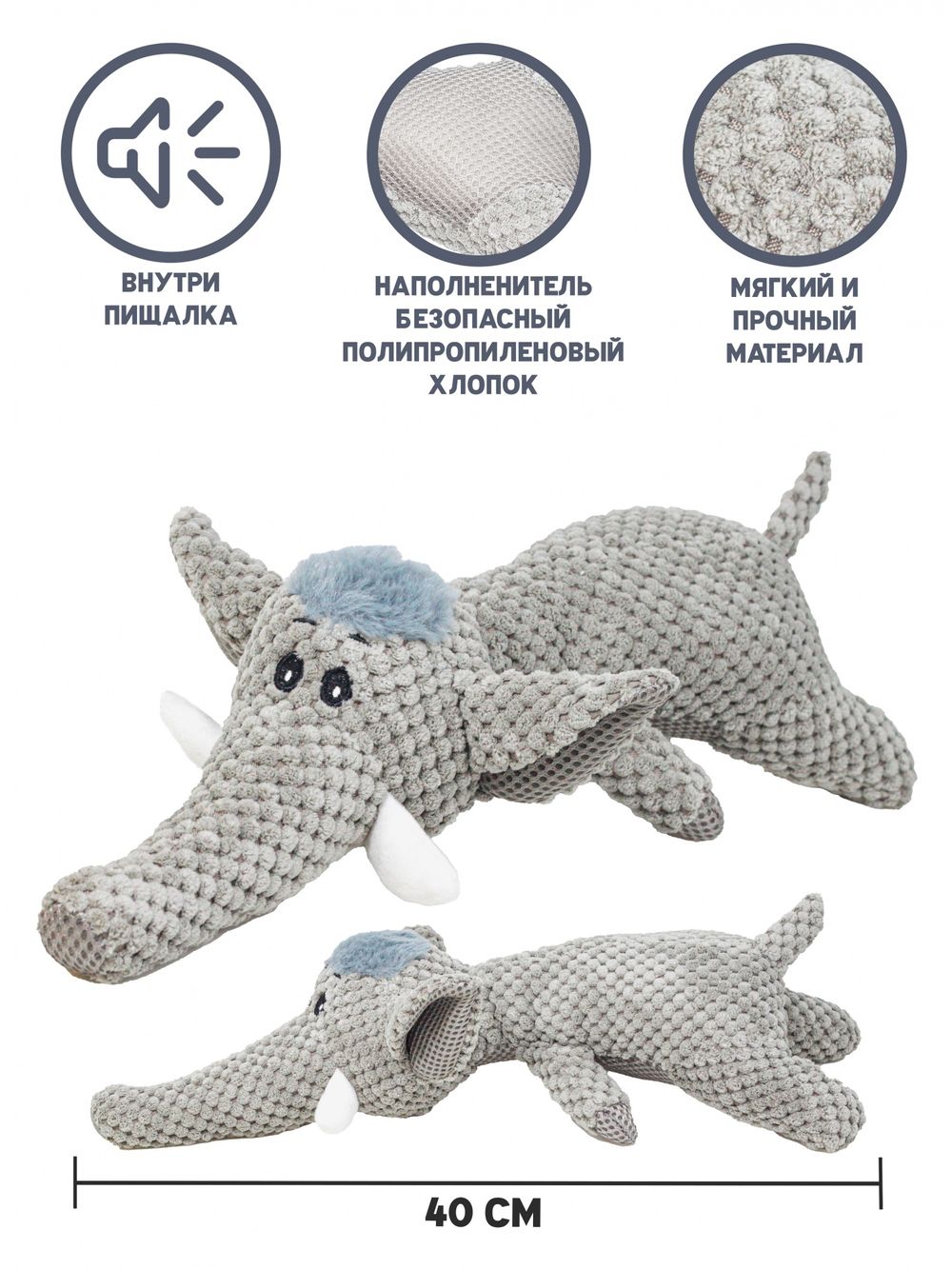 Тип Игрушка для животных Тематика Животные Особенности Звук Материал ткань Цвет2 Серый Вес, кг 0.1 ШтрихКод 2000999702761 Производитель Китай Целевая аудитория Для Собак Количество цветов 1 Количество деталей 1 Возраст 0+ Бренд Молти Пол Животные Высота см 7 Длинна см 13 Ширина см 40