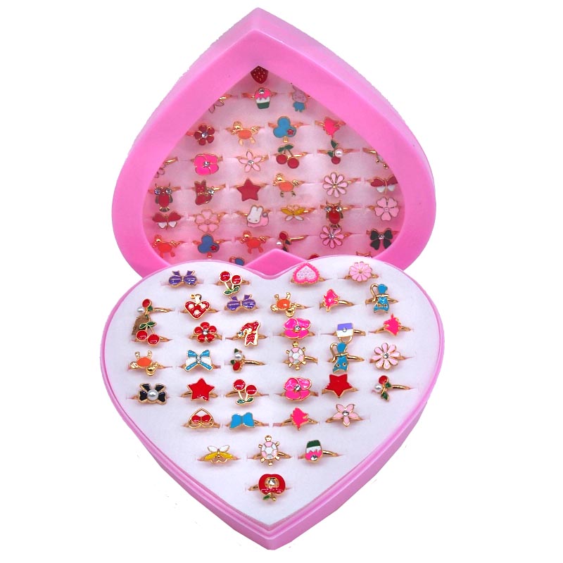 Колечки 2988-2/2453-14 (36) в коробках-сердечках с эмалью 2,5х1х1,8см