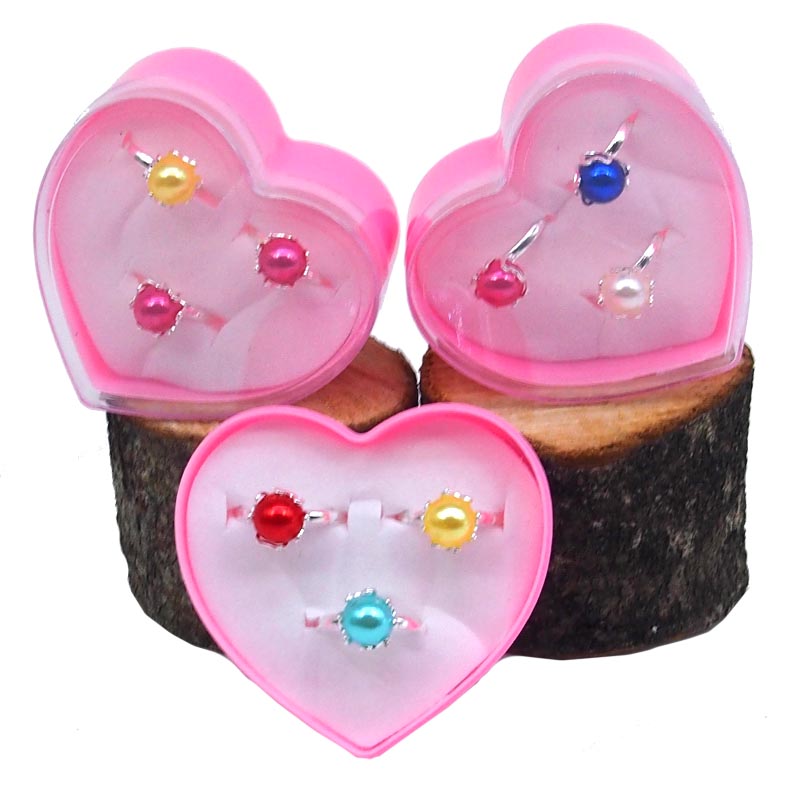 ----Набор колец 2453-9 (24) Жемчужные в коробках 3 шт. сердечках 6х2,5х9см.