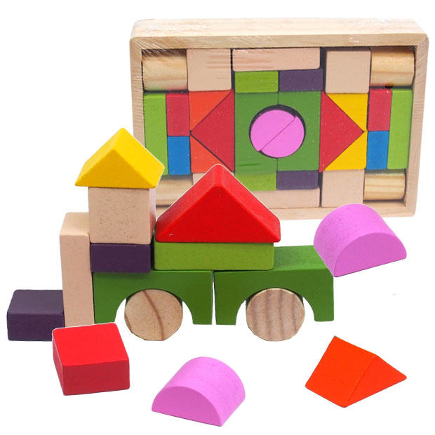 Деревянные 2745-2/31316 кубики геометрические фигуры в коробке средней 14,5х4,5х21см (30шт)