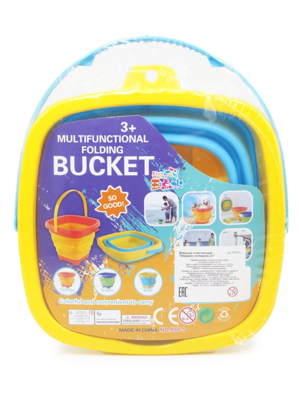 ----Игрушка YR43315-ж пластиковая "Ведро складное квадратное 2л" желтое