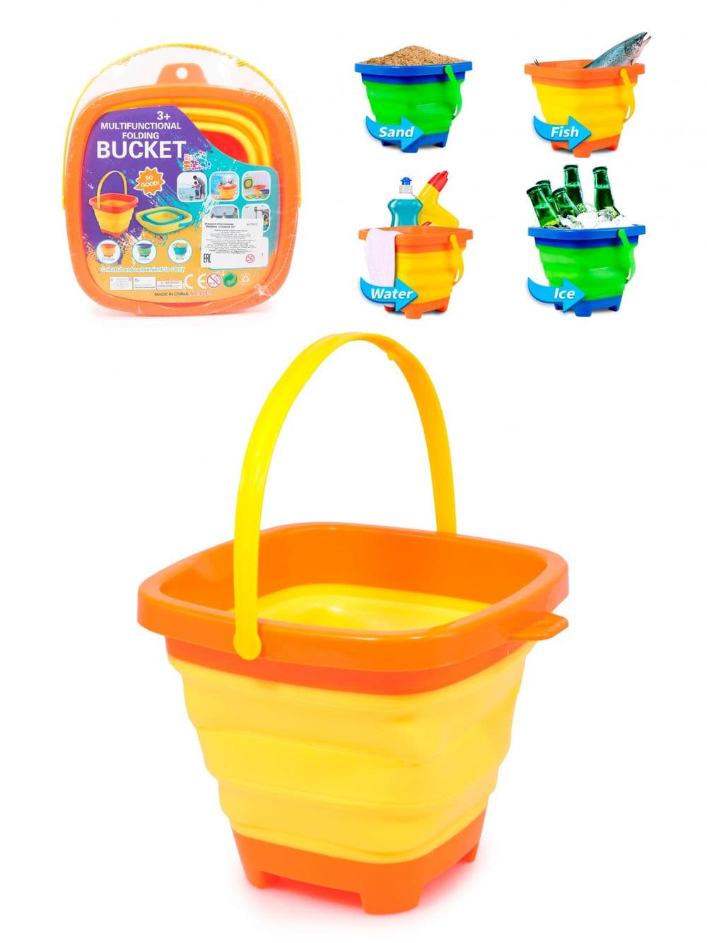 ----Игрушка YR43315-о пластиковая "Ведро складное квадратное 2л" оранжевое