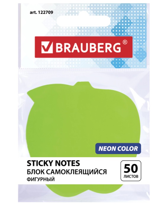 ----Блок самоклеящийся (стикеры) фигурный BRAUBERG НЕОНОВЫЙ "Яблоко", 50 л, зеленый, европодвес, 122709