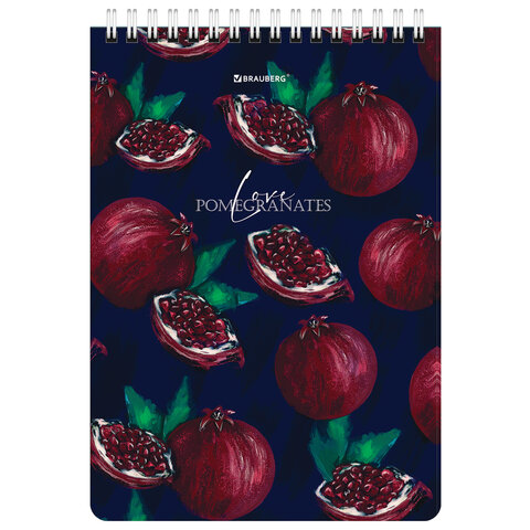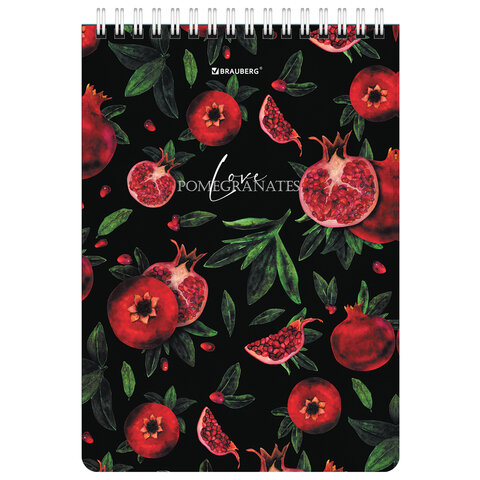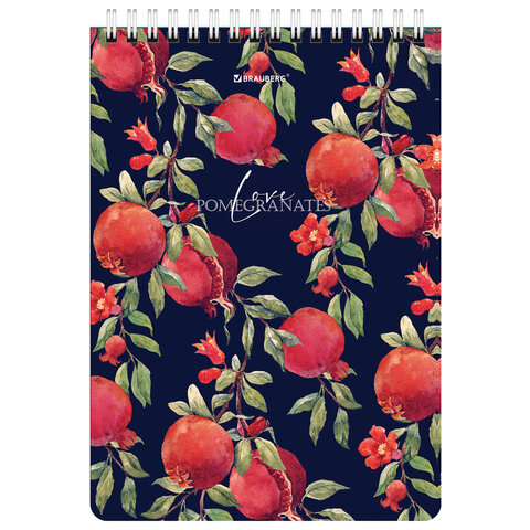 ----Блокнот А5, 146х206 мм, 60 л., гребень, картон, жесткая подложка, клетка, BRAUBERG, "Гранаты", 114366