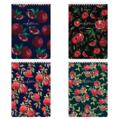 Поставляется в одном или нескольких вариантах дизайна без возможности выбора.<br><br>Формат: А5<br>Количество листов: 60<br>Тип обложки: мелованный картон<br>Скрепление блока: гребень (евроспираль)<br>Расположение переплета: верхнее<br>Линовка блока: клетка<br>Серия: мелованный картон<br>Тип спецэффектов на обложке: глянцевая ламинация<br>Внутренний блок: офсет<br>Плотность внутреннего блока: 60 г/м2<br>Цвет внутреннего блока: белый<br>Жесткая подложка: да<br>Ширина: 146 мм<br>Длина: 206 мм<br>Цвет обложки: ассорти<br>Дизайн обложки: Гранаты<br>Количество дизайнов в упаковке: 4 шт. -