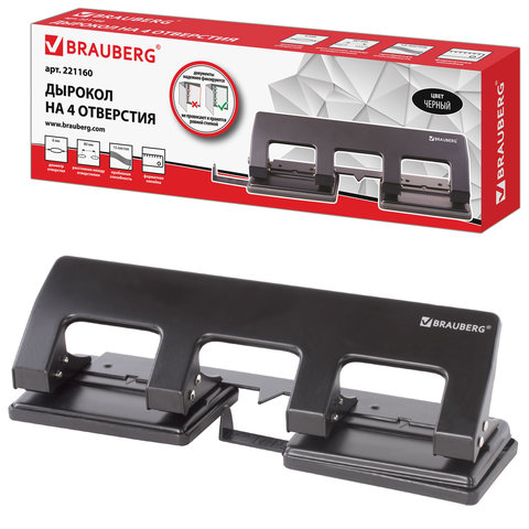----Дырокол металлический на 2-4 отверстия BRAUBERG "HL-4", до 15 л., черный, 221160