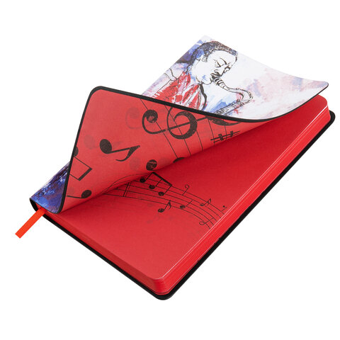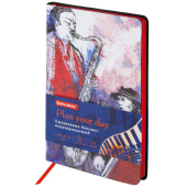Недатированный ежедневник BRAUBERG — отличный подарок к любому празднику или событию.<br><br>Тип ежедневника: недатированный<br>Формат: А5<br>Обложка: эко-кожа<br>Вид обложки: интегральная<br>Количество листов: 136 шт.<br>Особенности: закладка-ляссе<br>Серия: Vista<br>Дизайн: Jazz<br>Тип застежки: нет<br>Основной цвет обложки: с дизайном<br>Дополнительный цвет обложки: нет<br>Цвет среза: красный<br>Цвет внутреннего блока: белый<br>Плотность внутреннего блока: 70 г/м2<br>Высота строки для записи: 4 мм<br>Тип крепления: сшивка<br>Печать блока: 2 краски<br>Длина: 213 мм<br>Ширина: 138 мм<br>Толщина: 9 мм -