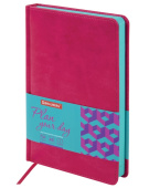 ----Ежедневник недатированный А5 138х213 мм BRAUBERG "Rainbow" под кожу, 136 л., розовый, 111665