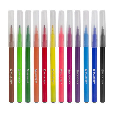 • Набор фломастеров BRAUBERG "PREMIUM" с насыщенными, яркими цветами в количестве 12 штук. Чернила на водной основе практически не имеют запаха, не токсичны и легко смываются с большинства материалов и тканей.<br><br>Имеют удобную круглую форму. Длина корпуса - 150 мм, диаметр - 8,2 мм. Благодаря линии письма 1-2 мм процесс раскрашивания становится легким и приятным. Быстросохнущие чернила предотвращают смазывание рисунка. Благодаря полипропиленовому корпусу срок службы фломастеров значительно увеличивается. Колпачок оснащен специальными прорезями для вентиляции, которые делают использование фломастеров более безопасным. Фломастеры обладают экономным расходом чернил, при этом длина линии письма достигает 500 метров. Рекомендованы для детей от 3-х лет. Рисование фломастерами BRAUBERG "PREMIUM" способствует развитию воображения, мелкой моторики рук у детей, координации движений кистей и пальцев и повышает способность концентрироваться и фокусировать внимание.<br><br>Количество цветов: 12<br>Форма корпуса: круглая<br>Эффект чернил: без эффекта<br>Тип чернил: легкосмываемые<br>Серия: PREMIUM CLASSIC<br>Ширина линии письма: 1 мм<br>Пишущий узел: 2 мм<br>Длина письма: 500 м<br>Длина корпуса: 150 мм<br>Диаметр корпуса: 8.2 мм<br>Вентилируемый колпачок: да<br>Упаковка: ПВХ-конверт с европодвесом