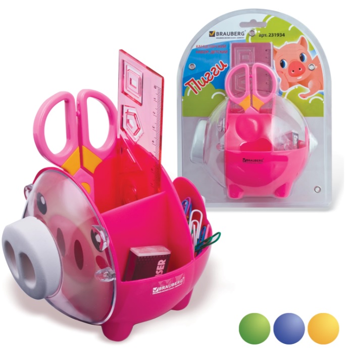 ----Канцелярский детский набор BRAUBERG "ПИГГИ", 5 предметов, ассорти, блистер, 231934
