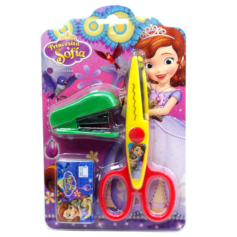 ----Канцелярский набор 829 ножницы фигурные+степлер+скобы в блистере 17х1,5х12см