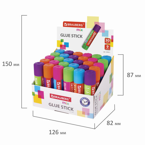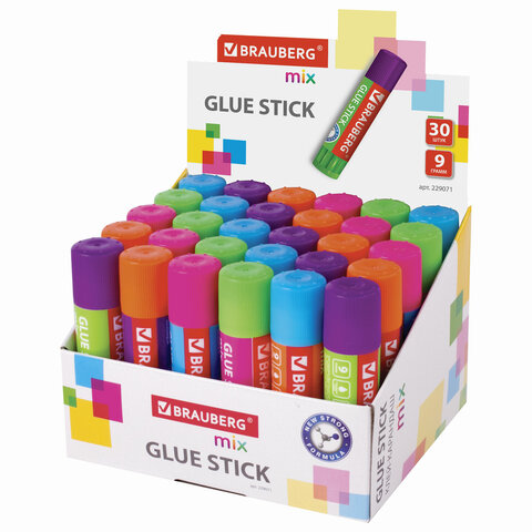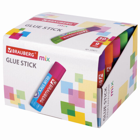 Клей-карандаш BRAUBERG MIX предназначен для склеивания бумаги, картона, фотобумаги.<br><br>Клей-карандаш BRAUBERG MIX гарантирует высокое качество склеивания благодаря PVP основе. Клей нетоксичен и безопасен в использовании. Не деформирует поверхность бумаги, не оставляет пятен. Плотный колпачок надежно предохраняет клей от высыхания. Компактный объем - 9 г.<br><br>Вес: 9 г<br>Количество в комплекте: 1 шт.<br>Основа клея: PVP<br>Назначение: бумага, картон, фотобумага<br>Серия: MIX<br>Дизайн: Микс<br>Без запаха: да<br>Форма корпуса: круглая<br>Срок годности: 60 мес.