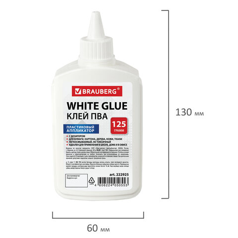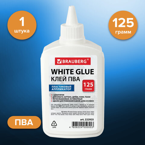 ----Клей ПВА BRAUBERG (бумага, картон, дерево), 125 г, 222925