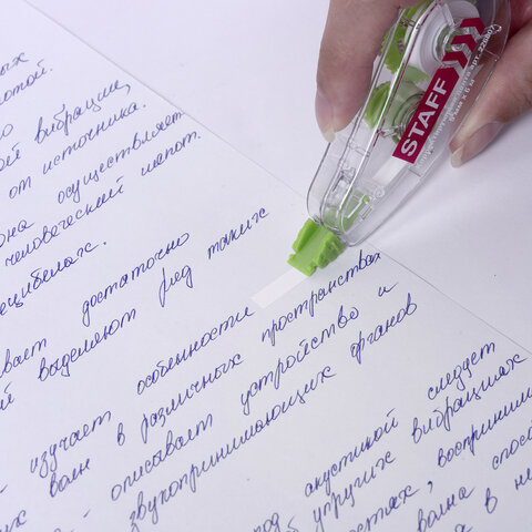 Корректирующая лента STAFF предназначена исправления печатного и рукописного текста.<br><br>Корректирующая лента идеально подходит тем, кто не любит ждать - после нанесения можно сразу писать по исправленному. Плотное и надежное покрытие не просвечивает. Корректировки не заметны на ксерокопиях докуметов. Общая длина корректирующей ленты — 6 м, ширина — 5 мм. Цвет корпуса - прозрачный. Поставляется в блистерной упаковке.<br><br>Ширина ленты: 5 мм<br>Длина ленты: 6 м<br>Серия: College<br>Количество в комплекте: 1 шт.<br>Цвет корпуса: прозрачный<br>Упаковка: блистер с европодвесом
