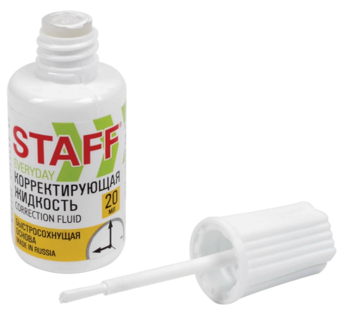 ----Корректирующая жидкость STAFF EVERYDAY быстросохнущая, 20 мл, с кисточкой, Россия, 224878