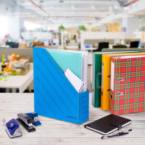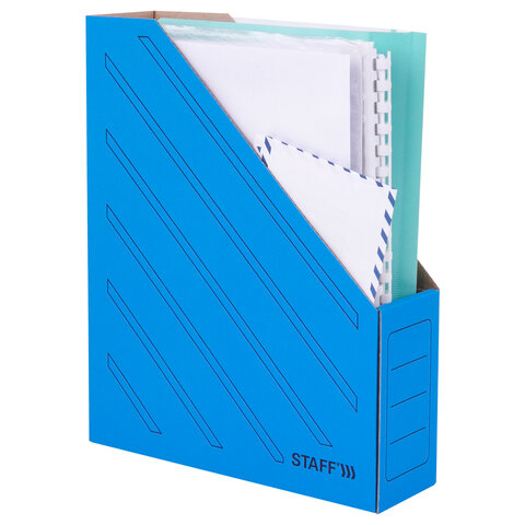 ----Лоток вертикальный для бумаг (260х320 мм), 75 мм, до 700 листов, микрогофрокартон, STAFF, СИНИЙ, 128882