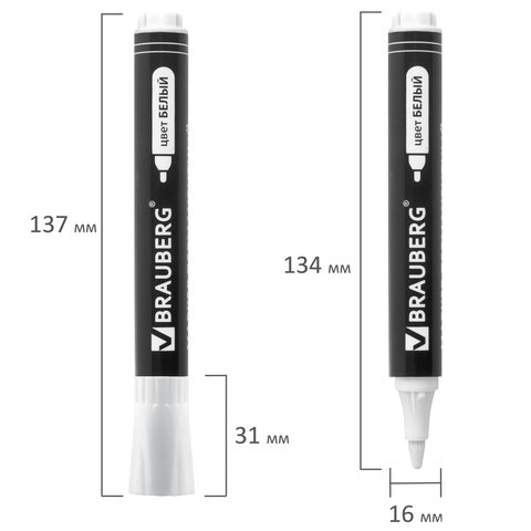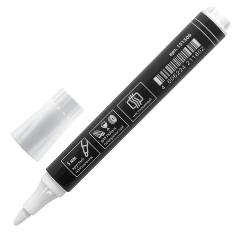 ----Маркер перманентный BRAUBERG "W5", БЕЛЫЙ, круглый наконечник 5 мм, 151506