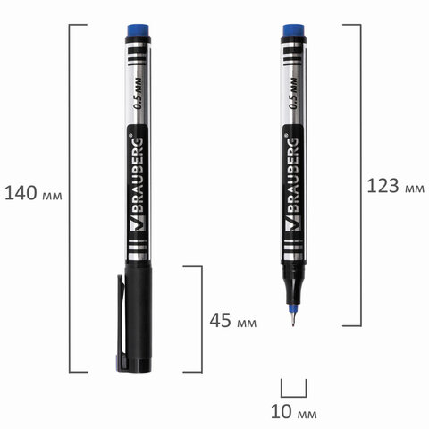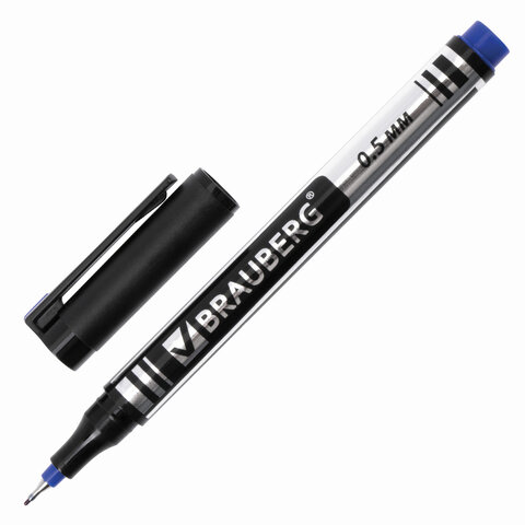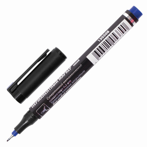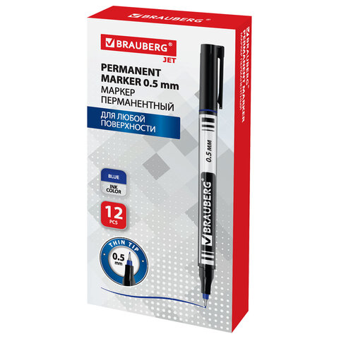 ----Маркер перманентный BRAUBERG "Jet", СИНИЙ, супертонкий металлический наконечник 0,5 мм, 150508
