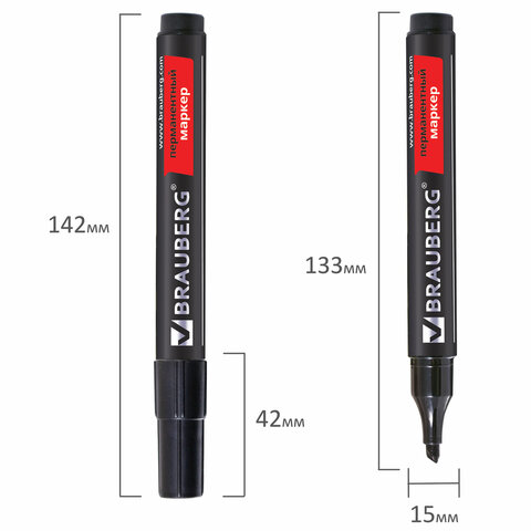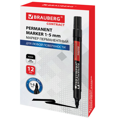 Маркер перманентный BRAUBERG "Contract", ЧЕРНЫЙ, скошенный наконечник, 1-5 мм, 150469