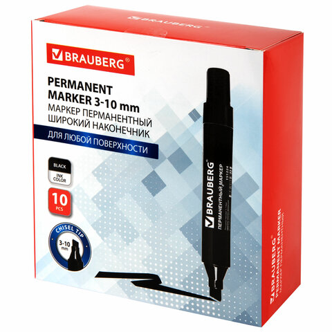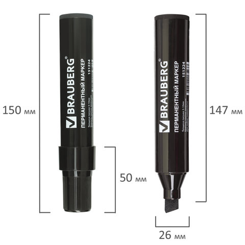 Маркер перманентный BRAUBERG "JUMBO", ЧЕРНЫЙ, ШИРОКАЯ ЛИНИЯ ПИСЬМА, скошенный 3-10мм, 151224