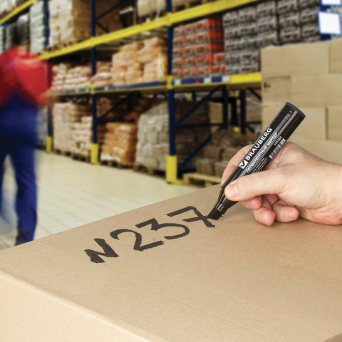 Маркер перманентный BRAUBERG "JUMBO" предназначен для письма на любой поверхности: бумага, полиэтилен, дерево, стекло, металл, натуральная кожа, ткань, камень, плитка.<br><br>Маркер перманентный черного цвета обладает круглой формой корпуса из пластика, диаметр которого 26 мм. Толщина линии письма - 3-10 мм в зависимости от угла наклона. Особая нестираемая основа перманентного маркера обеспечивает такие качества, как стойкость к воздействию воды, ультрафиолета, низких и высоких температур. Благодаря спиртовой основе чернила быстро сохнут и не смазываются. Износостойкий фетровый наконечник устойчив к повреждениям и обеспечивает экономный расход чернил. Изделие не перезаправляется. Плотно закрывается колпачком, что предотвращает высыхание наконечника и чернил. Цвет корпуса и колпачка соответствует цвету чернил.<br><br>Цвет чернил: черный<br>Количество в комплекте: 1 шт.<br>Форма наконечника: скошенный<br>Минимальная толщина линии письма: 3 мм<br>Максимальная толщина линии письма: 10 мм<br>Серия: Jumbo<br>Подходит для левшей: да<br>Водостойкие чернила: да<br>Повышенная светостойкость: да<br>Быстросохнущие чернила: да<br>Наконечник устойчив к повреждению и истиранию: да<br>Форма корпуса: круглая<br>Диаметр корпуса: 26 мм<br>Материал корпуса: пластик<br>Основа чернил: спиртовая<br>Упаковка: картонная коробка