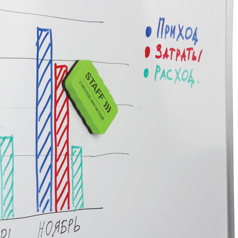 Это товар эконом-сегмента, поэтому он отличается привлекательной ценой. Товар обладает базовым набором характеристик и простой упаковкой, при этом полностью соответствует основным требованиям потребителей.<br><br>Назначение: для магнитно-маркерной доски<br>Наличие магнита: да<br>Форма: прямоугольная<br>Длина: 107 мм<br>Ширина: 57 мм<br>Товар относится к сегменту ЭКОНОМ: да<br>Количество в комплекте: 1 шт.<br>Материал корпуса: EVA<br>Материал салфетки: фетр<br>Цвет: зеленый -
