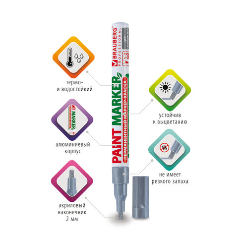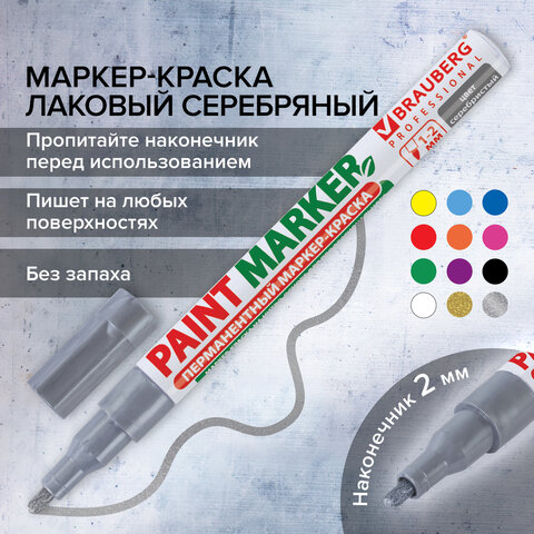 ----Маркер-краска лаковый (paint marker) 2 мм, СЕРЕБРЯНЫЙ, БЕЗ КСИЛОЛА (без запаха), алюминий, BRAUBERG PROFESSIONAL, 150866